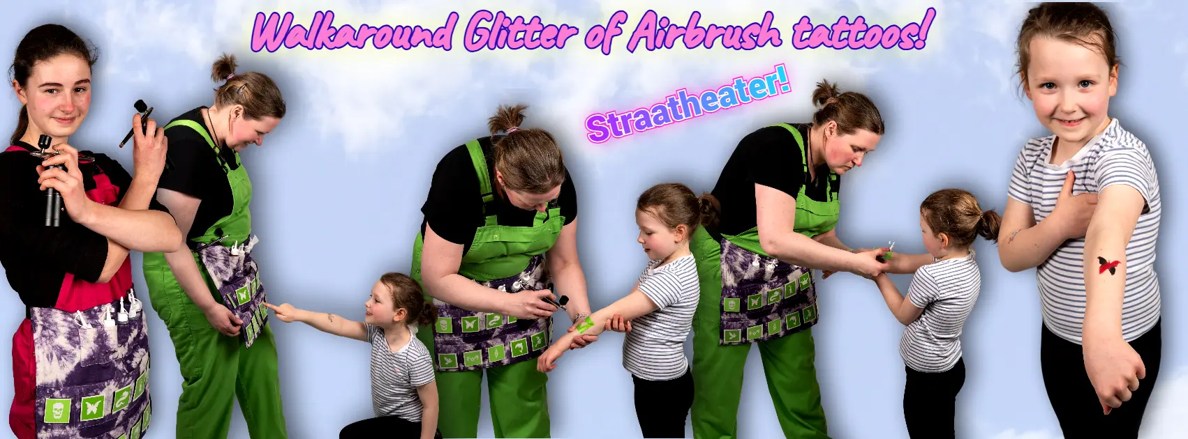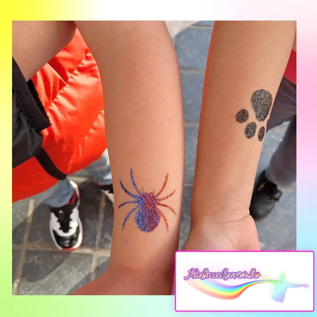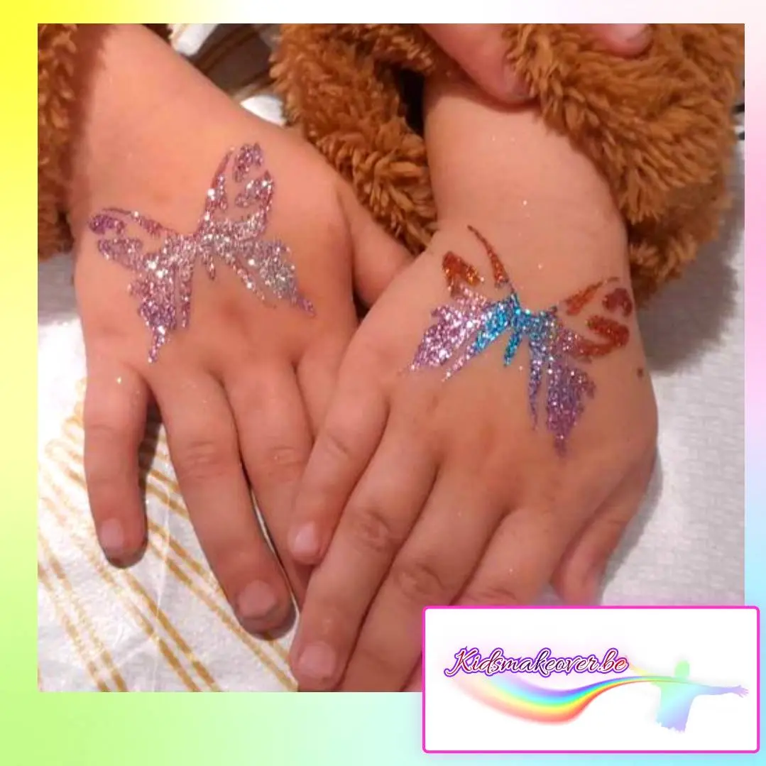Als organisator krijgt u de keuze voor airbrush of glittertattoos per animator. Deze gaat gaat mobiel op stap om zoveel mogelijk kids te voorzien van een leuke tattoo. Let wel dat het aanbod van ontwerpen hier beperkt blijft tot een 15-tal waaruit de kinderen snel kunnen kiezen.